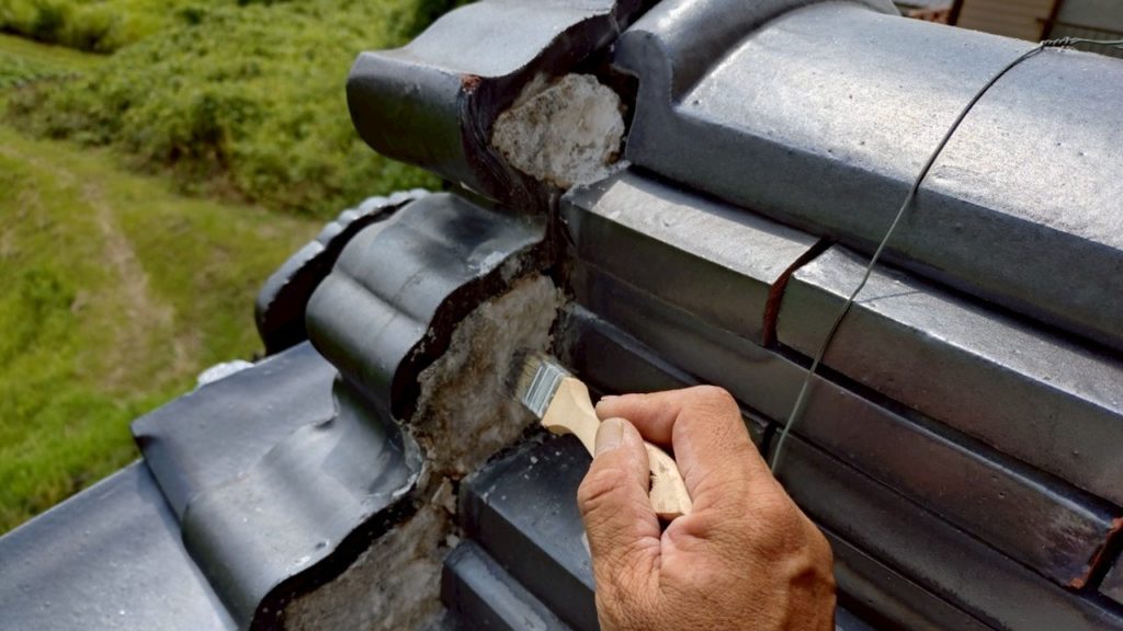 瓦屋根の寿命を延ばす!奈義町での棟漆喰・鬼際修理の工程