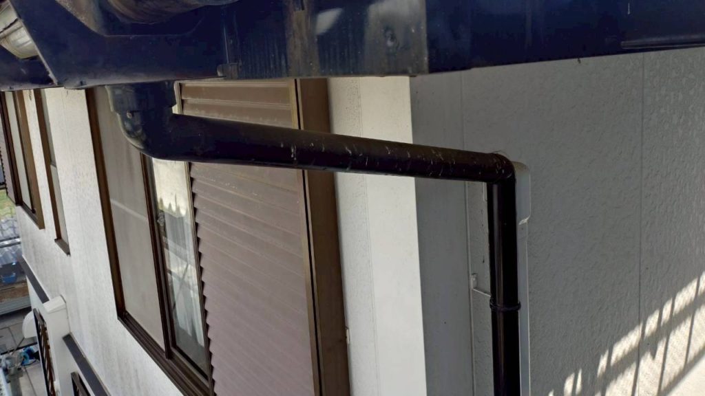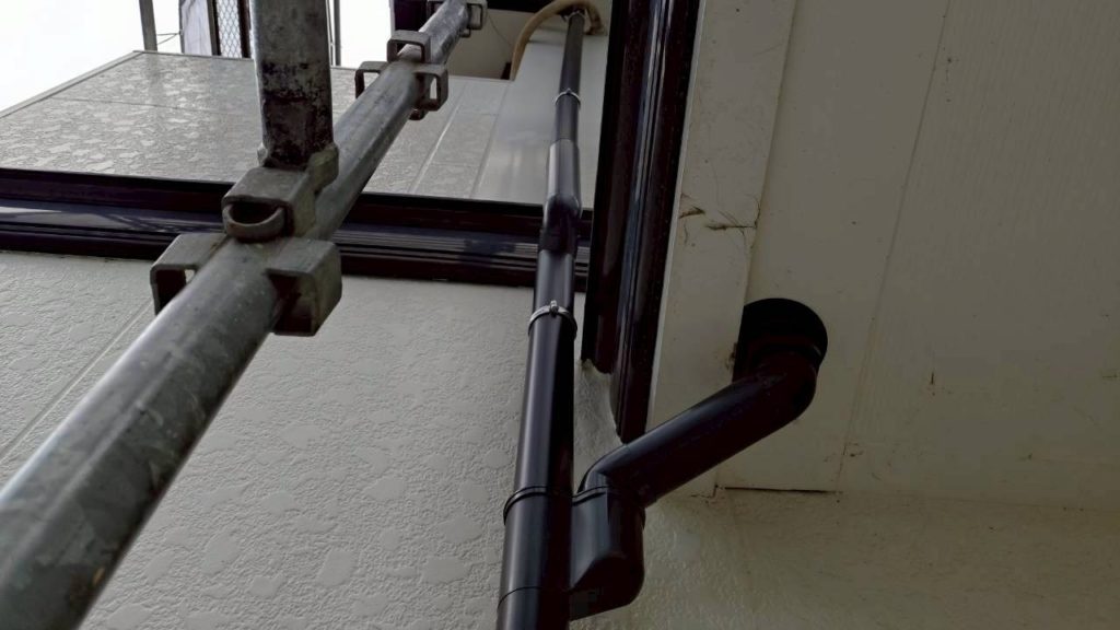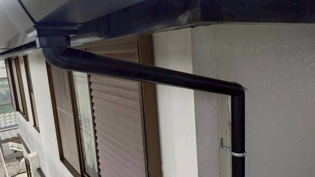 新しい一体型樋からの雨水を地上に排水するための竪樋も新しく交換しました。