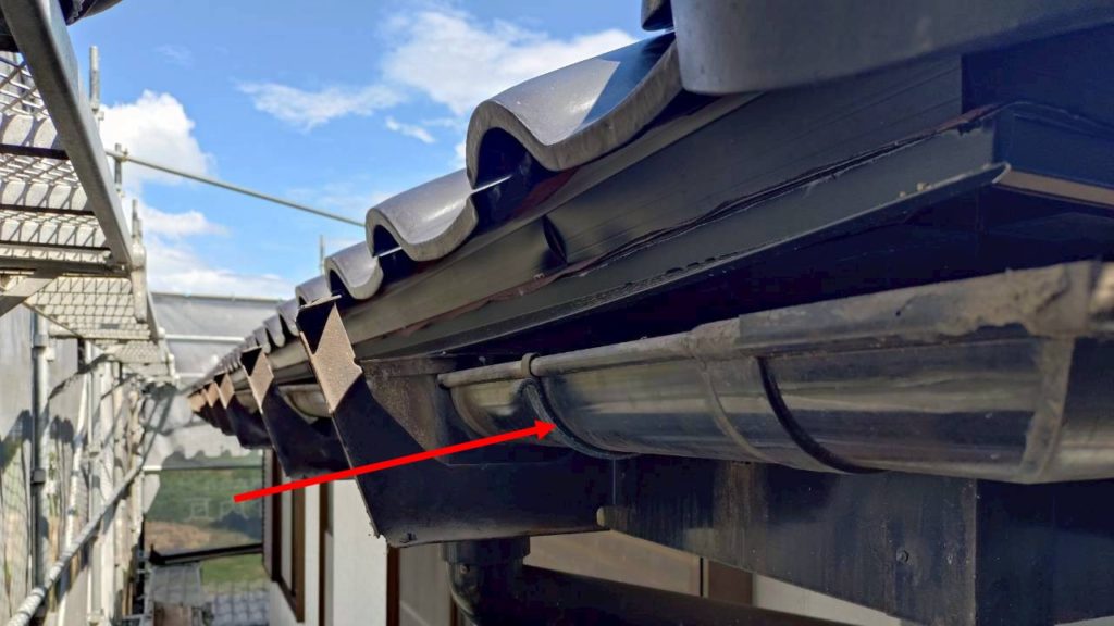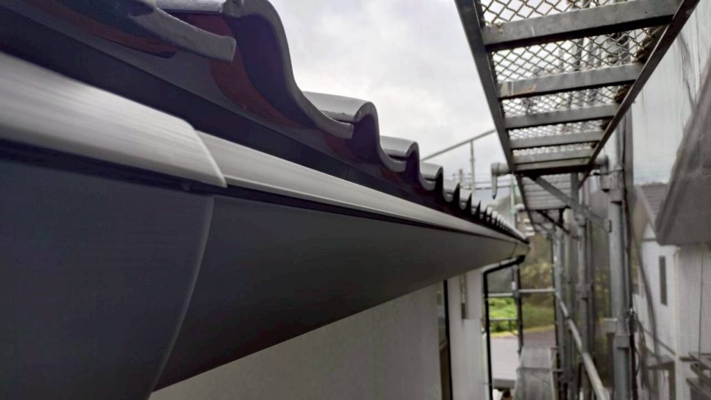 既存の樋は、カバーがついていました。これは雨水が樋から溢れることを防ぐ、オーバフロー防止や、落ち葉などのゴミが入らないようにする役目をしていました。