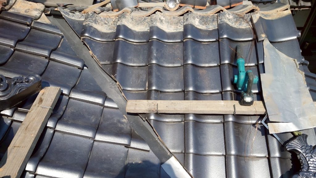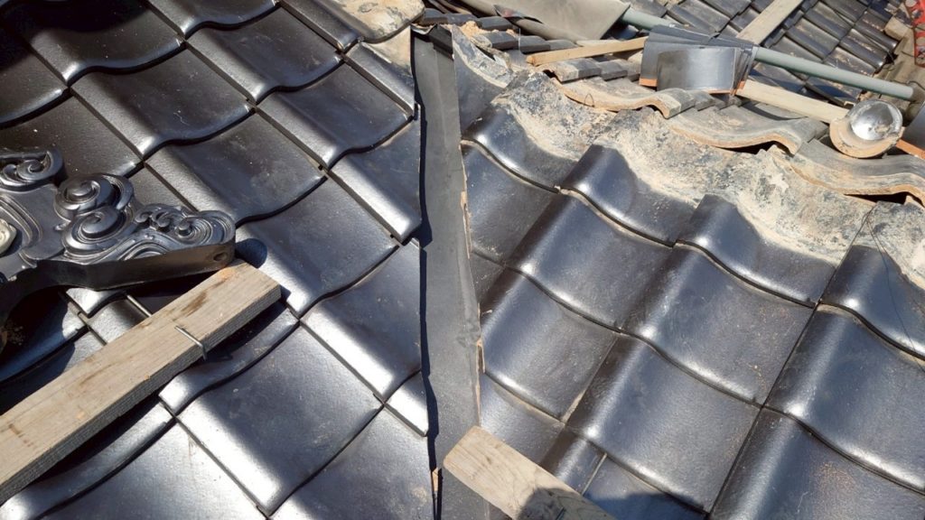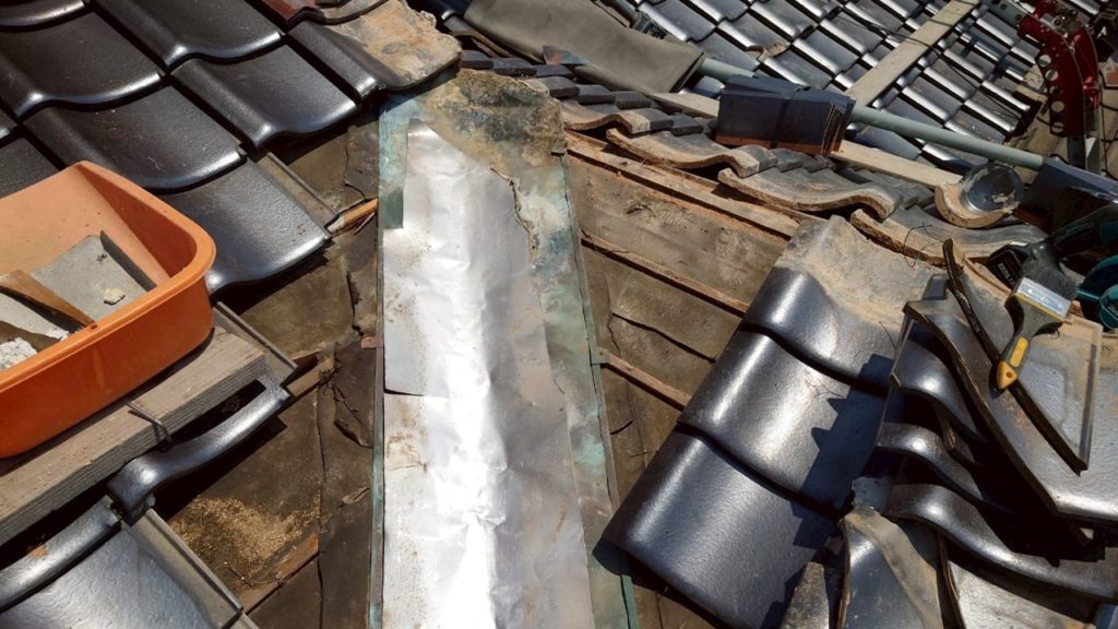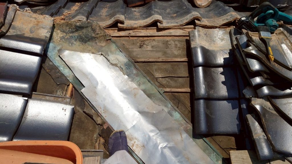 新しい谷板の上に瓦を葺き直して、谷板の一部分の交換は完成です。