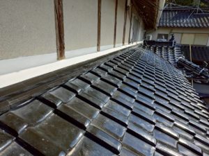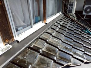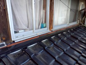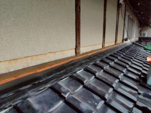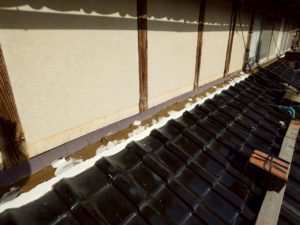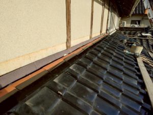 【勝央町河原】瓦屋根修理|下屋根 壁際 のし瓦積み替え・漆喰補修・雨押え板金施工事例