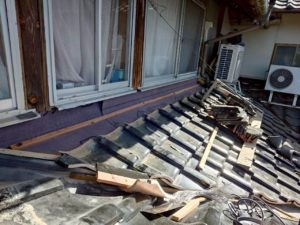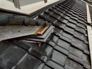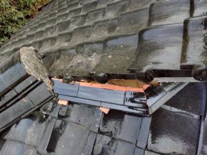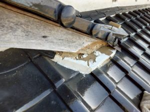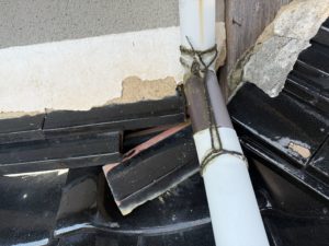 ・破風尻 漆喰の劣化とのし瓦のズレ