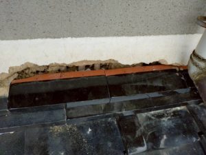 ・西側壁際 漆喰の劣化とのし瓦のズレ