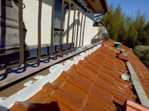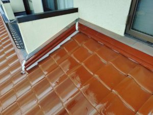 のし瓦がズレて隙間が発生しており、本来防がれるべき雨水が 壁際から侵入する恐れがあります。 特に吹き込みの雨では雨漏りリスクが高い状態でした。