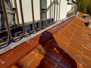 | 施工内容 | 勝田郡奈義町で雪害による雨漏りの修理を行いました。工事概要施工地域:奈義町 ■工事内容:雨漏り修理 (棟積み替え・壁際のし積み替え) ■症状:雨漏り ■工期:5日間 ご相談内容奈義町のお客様より「雪が降った後、瓦がずれている。雨漏りしている。」との ご相談をいただきました。現地調査を行うため、屋根の点検を行いました。 雨漏りの原因ベランダと一階部分の屋根が接地している壁際のし瓦と、谷の始まりの壁際のし瓦の崩れが見られました。 瓦のズレによってできた隙間から、雨水が屋根内部に侵入し 雨漏りしていたようです。 施工前の状況